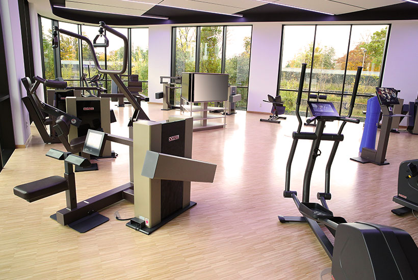 Das Herzstück unserer Anlage ist ein großzügiges Fitnessstudio, aufgeteilt in zwei lichtdurchflutete Trainingsbereiche mit großen Fensterfronten und traumhafter Aussicht.